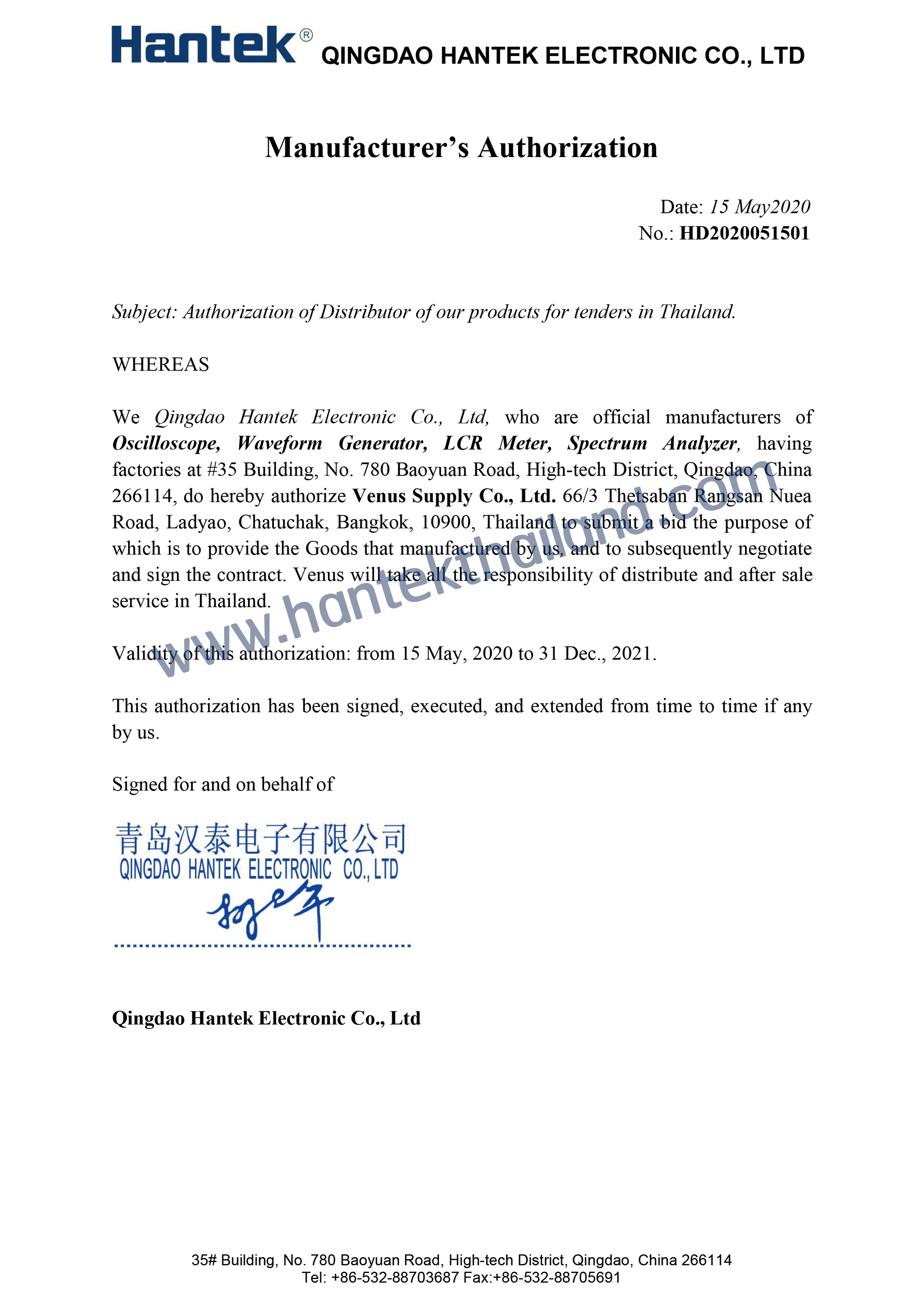 E-mail : hantekthailand@gmail.com