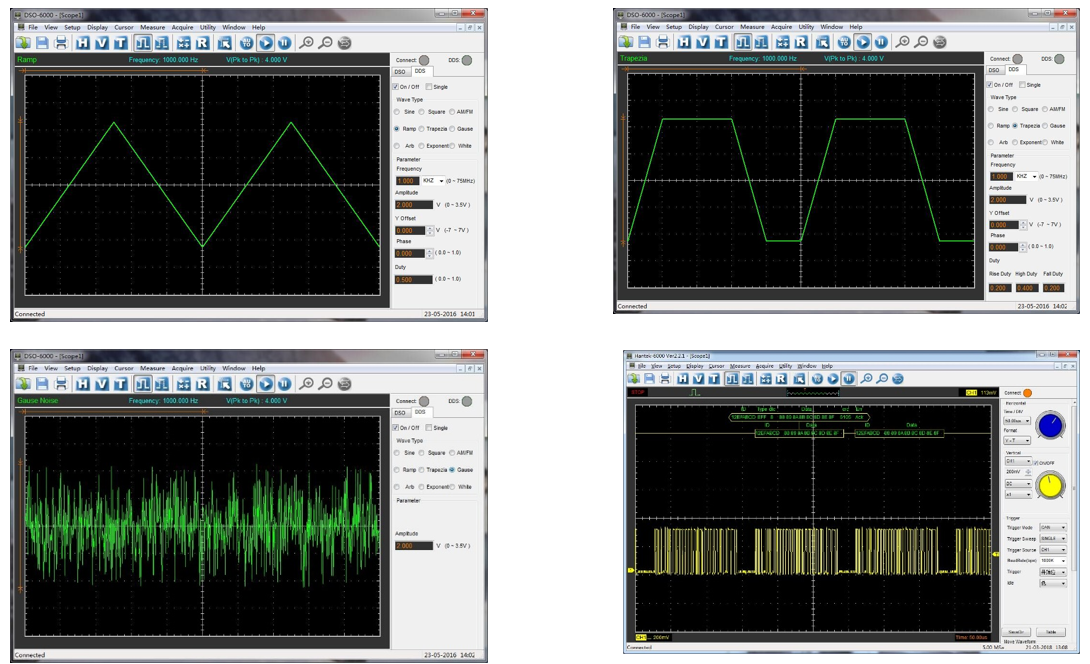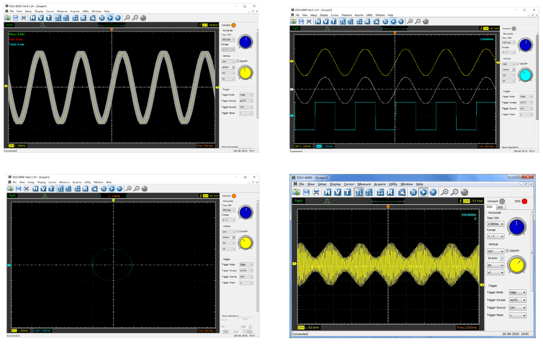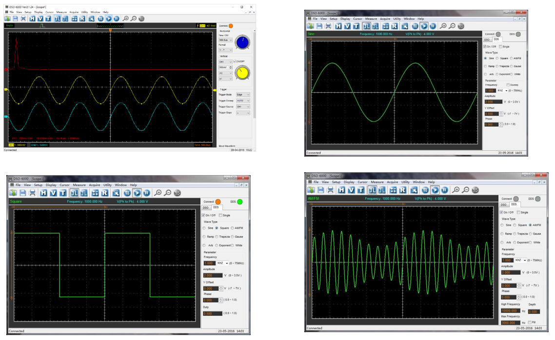 Hantek 6004BD Series เป็น PC USB Oscilloscope & function generator แสดงผลบนคอมพิวเตอร์ PC หรือ Notebook ผ่านพอร์ต USB มีช่องวัดสัญญาณ (Channel) 4 ช่อง อัตราการสุ่มสัญญาณ (Real-Time Sampling Rate) สูงสุดที่ 1 GSa/s Sensitivity input 2mV – 10V/DIV มีแบนด์วิดท์สูงสุดที่ 250 MHz และมี Arbitrary Waveform Generator ใช้งานง่าย เพียงติดตั้ง Driver และ Software บนเครื่องคอมพิวเตอร์แล้วเสียบสาย USB 2.0 สามารถใช้งานได้เลยทันที