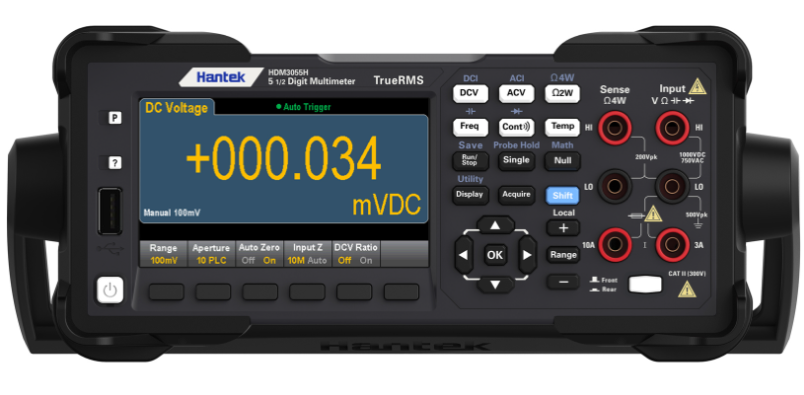 HDM3055 ดิจิตอลมัลติมิเตอร์แบบตั้งโต๊ะ 5 1/2 bit ที่ความละเอียดสูง 1 μV ความถี่สุ่มตัวอย่างความเร็วสูง 30 k/s ซึ่งทำให้ง่ายต่อการจับสัญญาณชั่วคราว อินพุตมัลติมิเตอร์ด้านหน้าและด้านหลัง วัด คีย์สวิตช์ การวิเคราะห์สถิติ ฟังก์ชันฮิสโตแกรมและรันแผนภูมิ ฟังก์ชันการวัดการแสดงผลแบบคู่ แสดงพารามิเตอร์สัญญาณ 2 ชนิดพร้อมกัน ฟังก์ชั่นการวัดที่หลากหลายแรงดัน DC, แรงดันไฟ AC,กระแสไฟ DC, กระแสไฟ AC, ความต้านทาน 2 สาย, ความต้านทาน 4 สาย, ความจุ, ไดโอด, การเชื่อมต่อ, ความถี่, ระยะเวลา, อุณหภูมิ หน้าจอ LCD สีขนาด 4.3 นิ้ว; ใช้งานง่าย อินเทอร์เฟซการวัดมากมาย